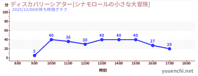 2025/12/08の待ち時間グラフ (ディスカバリーシアター[シナモロールの小さな大冒険])