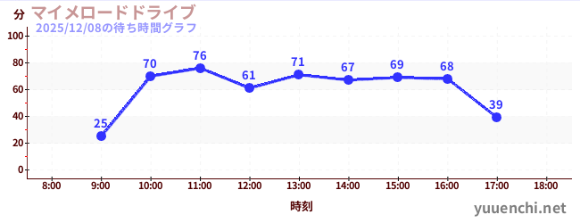 2025/12/08の待ち時間グラフ (マイメロードドライブ)