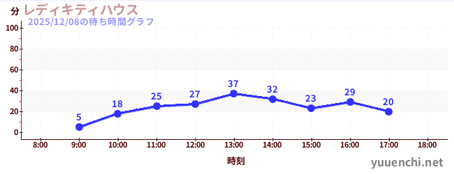 2025/12/08の待ち時間グラフ (レディキティハウス)