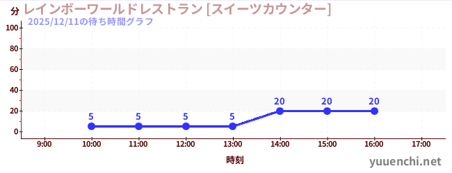 2025/12/11の待ち時間グラフ (レインボーワールドレストラン [スイーツカウンター])