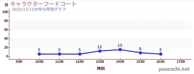 2025/12/11の待ち時間グラフ (キャラクターフードコート)
