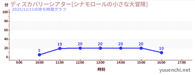 2025/12/11の待ち時間グラフ (ディスカバリーシアター[シナモロールの小さな大冒険])