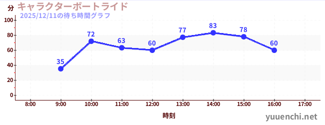 2025/12/11の待ち時間グラフ (キャラクターボートライド)