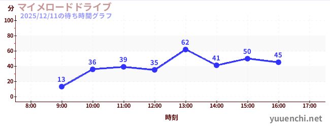 2025/12/11の待ち時間グラフ (マイメロードドライブ)
