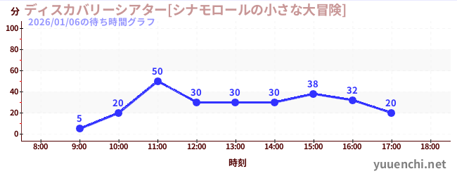 2026/01/06の待ち時間グラフ (ディスカバリーシアター[シナモロールの小さな大冒険])