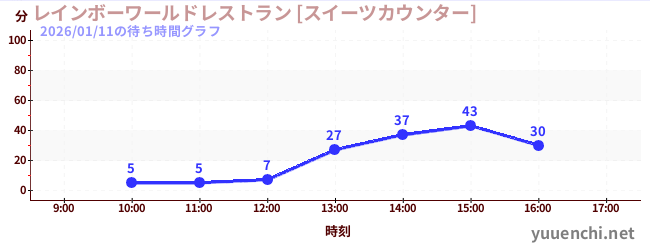 2026/01/11の待ち時間グラフ (レインボーワールドレストラン [スイーツカウンター])