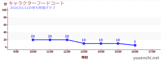 2026/01/11の待ち時間グラフ (キャラクターフードコート)