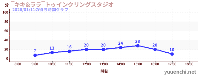 2026/01/11の待ち時間グラフ (‾キキ&ララ‾トゥインクリングスタジオ)