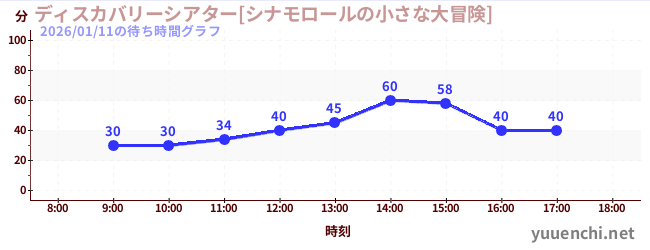 2026/01/11の待ち時間グラフ (ディスカバリーシアター[シナモロールの小さな大冒険])