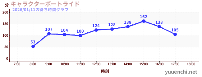 2026/01/11の待ち時間グラフ (キャラクターボートライド)