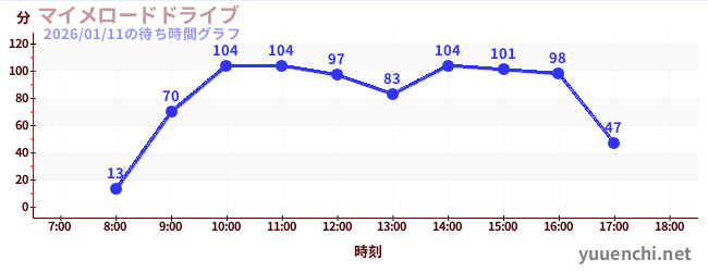 2026/01/11の待ち時間グラフ (マイメロードドライブ)