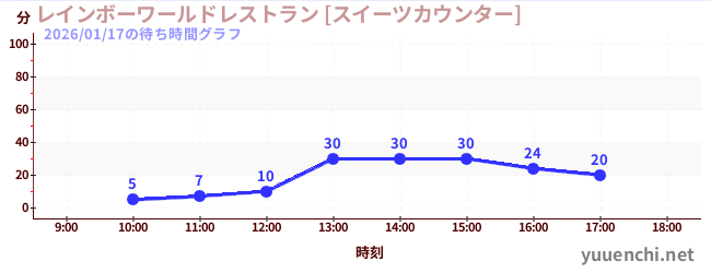 2026/01/17の待ち時間グラフ (レインボーワールドレストラン [スイーツカウンター])