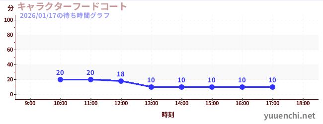 2026/01/17の待ち時間グラフ (キャラクターフードコート)