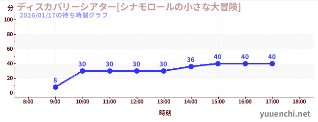 2026/01/17の待ち時間グラフ (ディスカバリーシアター[シナモロールの小さな大冒険])