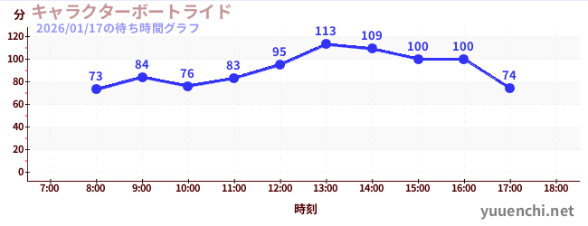 2026/01/17の待ち時間グラフ (キャラクターボートライド)