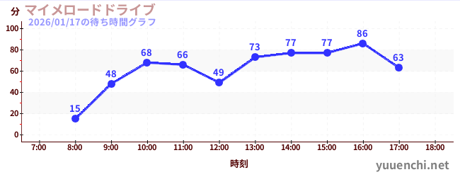 2026/01/17の待ち時間グラフ (マイメロードドライブ)