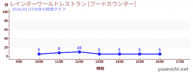 2026/01/27の待ち時間グラフ (レインボーワールドレストラン [フードカウンター])
