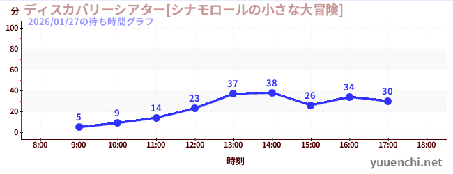 2026/01/27の待ち時間グラフ (ディスカバリーシアター[シナモロールの小さな大冒険])