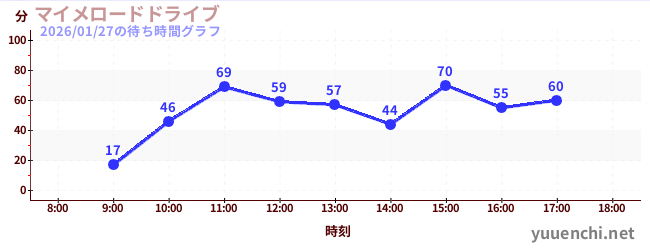2026/01/27の待ち時間グラフ (マイメロードドライブ)