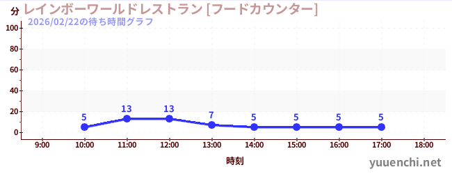 2026/02/22の待ち時間グラフ (レインボーワールドレストラン [フードカウンター])