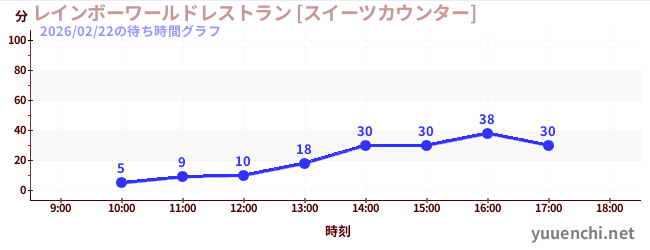 2026/02/22の待ち時間グラフ (レインボーワールドレストラン [スイーツカウンター])