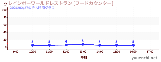 2026/02/27の待ち時間グラフ (レインボーワールドレストラン [フードカウンター])