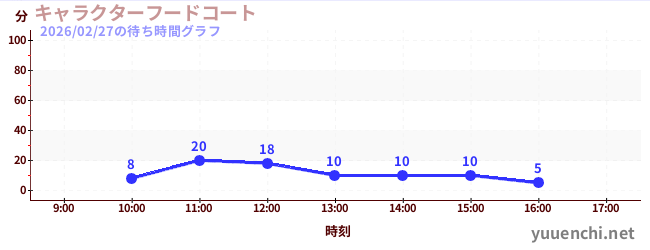 2026/02/27の待ち時間グラフ (キャラクターフードコート)