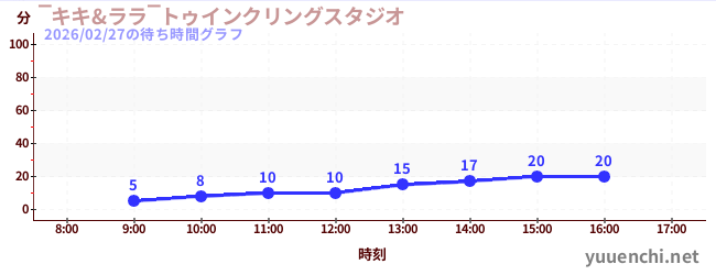 2026/02/27の待ち時間グラフ (‾キキ&ララ‾トゥインクリングスタジオ)