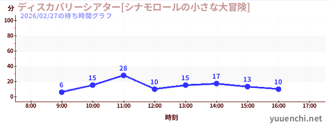 2026/02/27の待ち時間グラフ (ディスカバリーシアター[シナモロールの小さな大冒険])