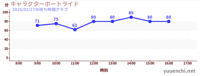 2026/02/27の待ち時間グラフ (キャラクターボートライド)