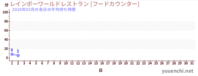 2026/03の一日平均待ち時間 (レインボーワールドレストラン [フードカウンター])