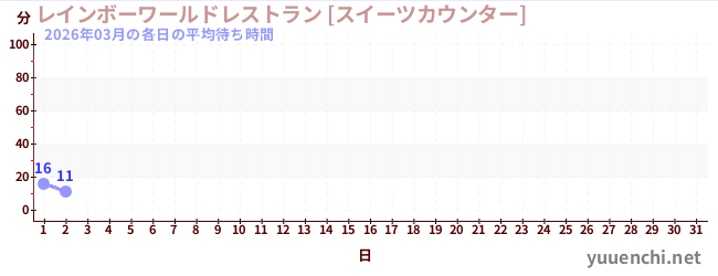 2026/03の一日平均待ち時間 (レインボーワールドレストラン [スイーツカウンター])