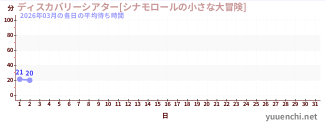 2026/03の一日平均待ち時間 (ディスカバリーシアター[シナモロールの小さな大冒険])