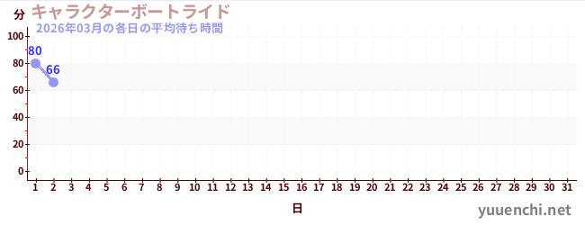 2026/03の一日平均待ち時間 (キャラクターボートライド)