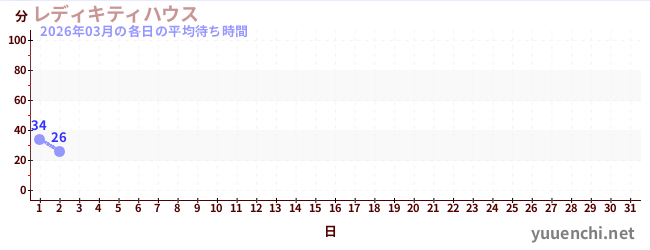 2026/03の一日平均待ち時間 (レディキティハウス)