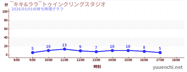 2026/03/01の待ち時間グラフ (‾キキ&ララ‾トゥインクリングスタジオ)