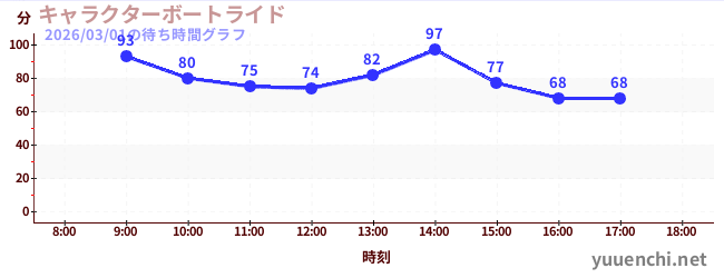2026/03/01の待ち時間グラフ (キャラクターボートライド)