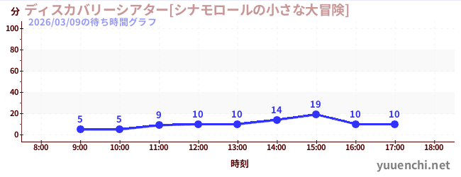 2026/03/09の待ち時間グラフ (ディスカバリーシアター[シナモロールの小さな大冒険])
