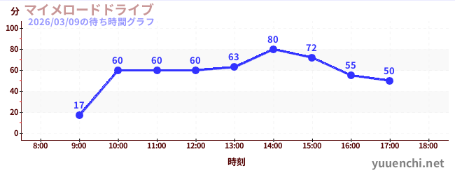 2026/03/09の待ち時間グラフ (マイメロードドライブ)