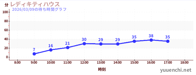 2026/03/09の待ち時間グラフ (レディキティハウス)