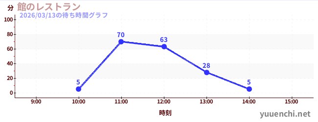2026/03/13の待ち時間グラフ (館のレストラン)