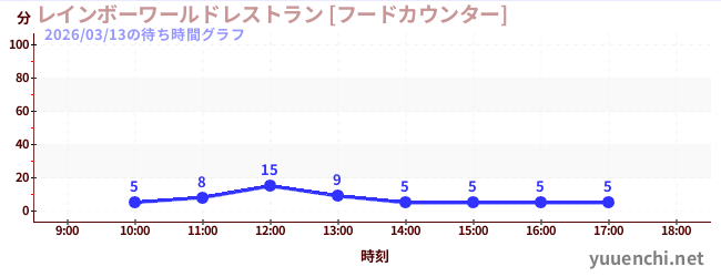 2026/03/13の待ち時間グラフ (レインボーワールドレストラン [フードカウンター])
