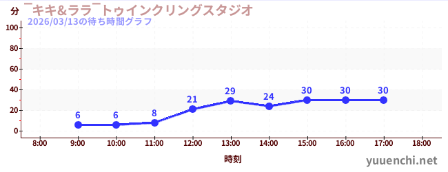 2026/03/13の待ち時間グラフ (‾キキ&ララ‾トゥインクリングスタジオ)