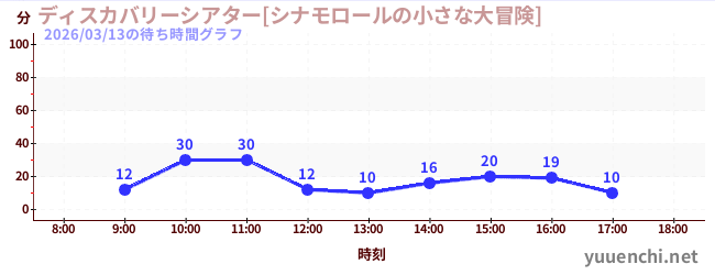 2026/03/13の待ち時間グラフ (ディスカバリーシアター[シナモロールの小さな大冒険])