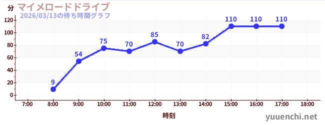 2026/03/13の待ち時間グラフ (マイメロードドライブ)