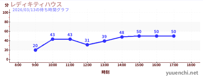 2026/03/13の待ち時間グラフ (レディキティハウス)