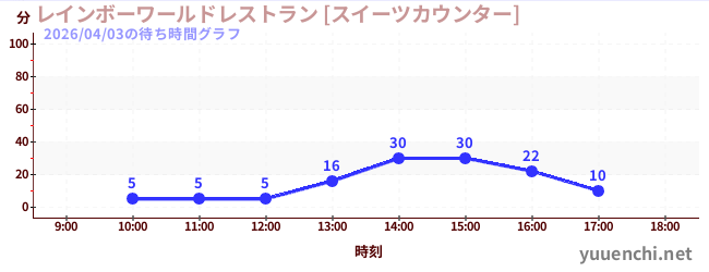 2026/04/03の待ち時間グラフ (レインボーワールドレストラン [スイーツカウンター])