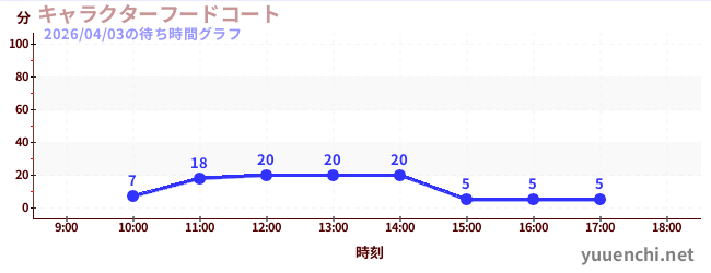 2026/04/03の待ち時間グラフ (キャラクターフードコート)