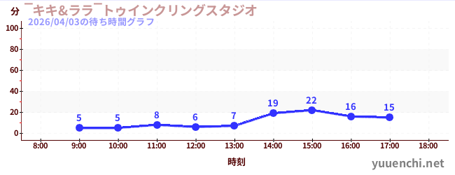 2026/04/03の待ち時間グラフ (‾キキ&ララ‾トゥインクリングスタジオ)