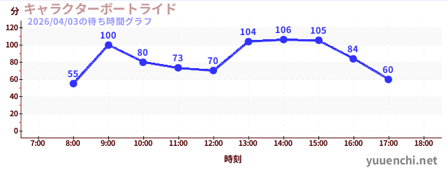 2026/04/03の待ち時間グラフ (キャラクターボートライド)